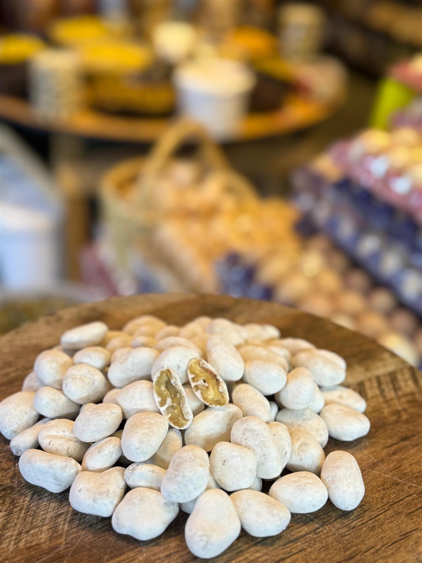 Kahramanmaraş’ın Elbistan yöresinden özenle seçilen birinci kalite cevizler, glikoz ve fruktoz içermeyen doğal pancar şekeri ve un karışımına batırılarak hazırlanır. Yumuşak kabuğuyla ağızda kolayca dağılır, lezzetini damağınıza nazikçe yayar.