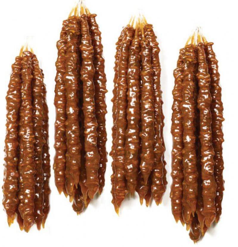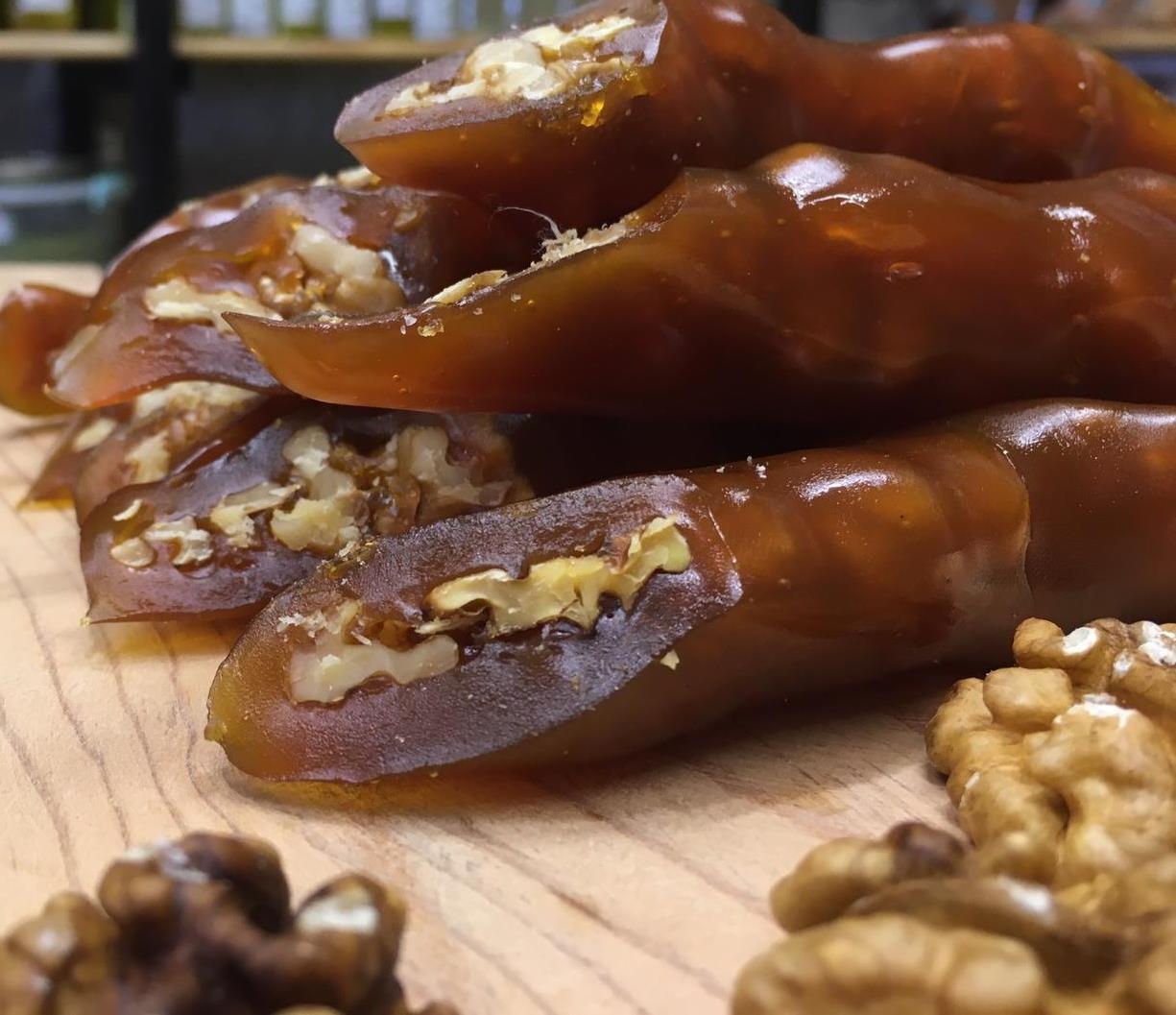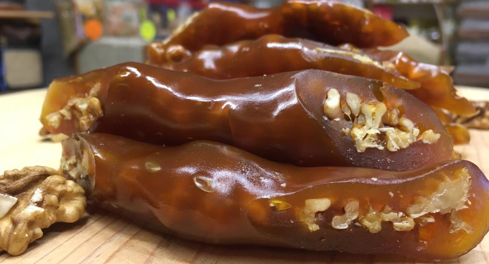 Maraşpazar.com Pekmezli Çift Cevizli Sucuk (500 gr), kendi üretimimiz olup Ziraat Mühendisleri eşliğinde hazırlanmıştır. Geleneksel Maraş usulü ile hazırlanan bu lezzetli sucuk, doğal pekmez ve bol ceviz ile hem tatlı hem de besleyici bir atıştırmalık sunar.