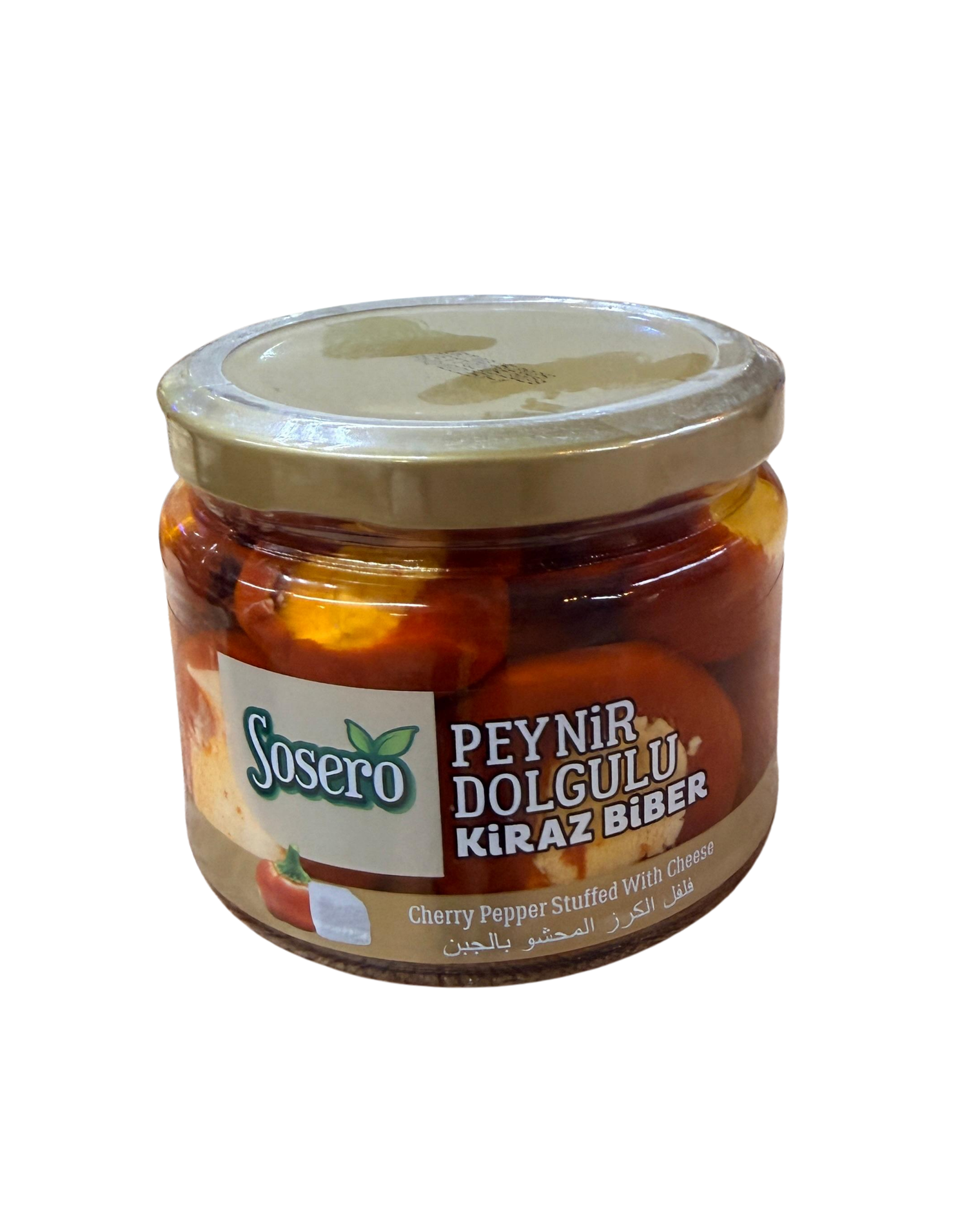 Sosero Peynir Dolgulu Kiraz Biber (300 gr), özenle seçilmiş kiraz biberlerin peynir dolgusu ile hazırlanmasıyla elde edilir. Dengeli acılığı ve yumuşak iç dolgusu sayesinde sofralarda, meze tabaklarında ve davet sunumlarında şık ve lezzetli bir alternatif sunar.